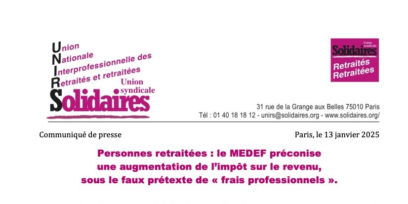 Personnes retraitées : le MEDEF préconise une augmentation de l’impôt sur le revenu, sous le faux prétexte de « frais professionnels ».