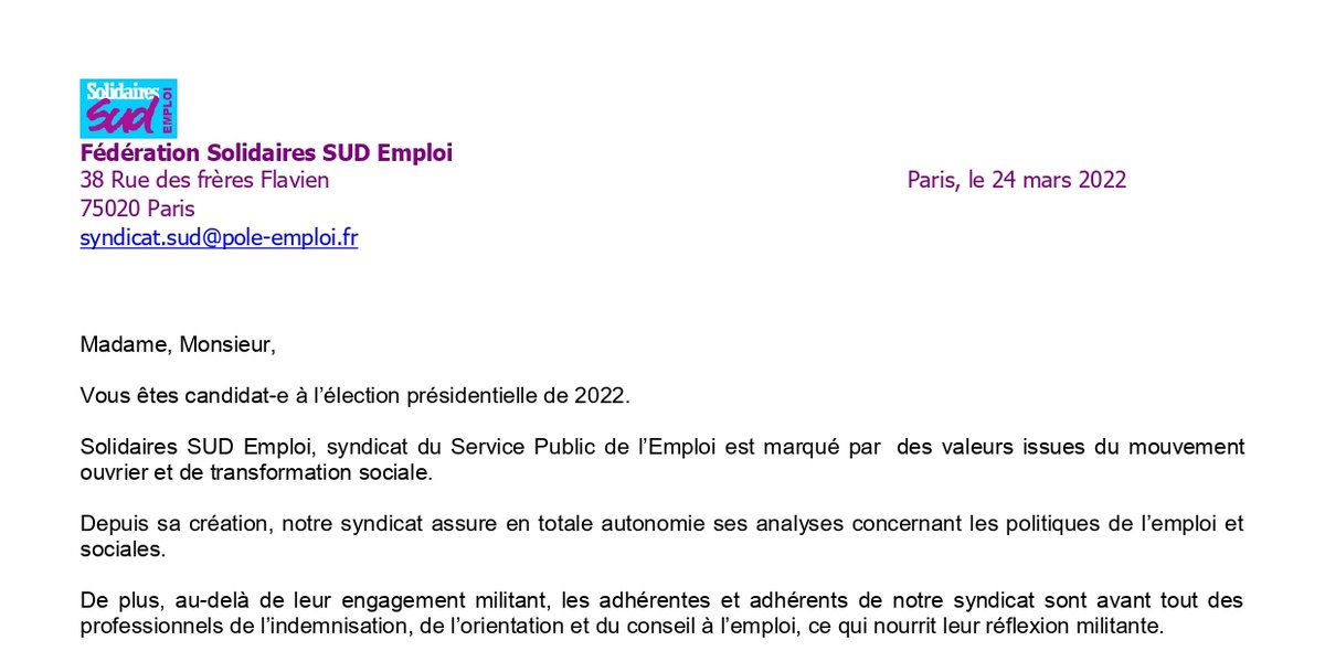 Solidaires SUD Emploi, syndicat du Service Public de l’Emploi est marqué par des valeurs issues du mouvement ouvrier et de transformation sociale. Depuis sa création, notre syndicat assure en totale autonomie ses analyses concernant les politiques de l’emploi et sociales. De plus, au-delà de leur engagement militant, les adhérentes et adhérents de notre syndicat sont avant tout des professionnels de l’indemnisation, de l’orientation et du conseil à l’emploi, ce qui nourrit leur réflexion militante. Solidaires SUD Emploi aborde un regard critique sur les problématiques qui touchent au quotidien les usagères et usagers du Service Public de l’Emploi, mais également l’ensemble des agents publics et privés de notre structure. Au regard de nos constats de terrain, Solidaires SUD Emploi, a ciblé principalement six thématiques sur lesquelles nous avons réalisé un travail d’analyse qui nous a permis d’établir nos revendications.