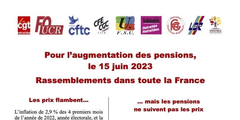 Nos 9 organisations de retraitées et retraités CGT, FO, CFTC, CFE-CGC, FSU, Solidaires, FGR-FP, LSR, Ensemble & Solidaires défendent notre système de retraite, agissent pour défendre le montant des pensions actuelles et nouvelles.