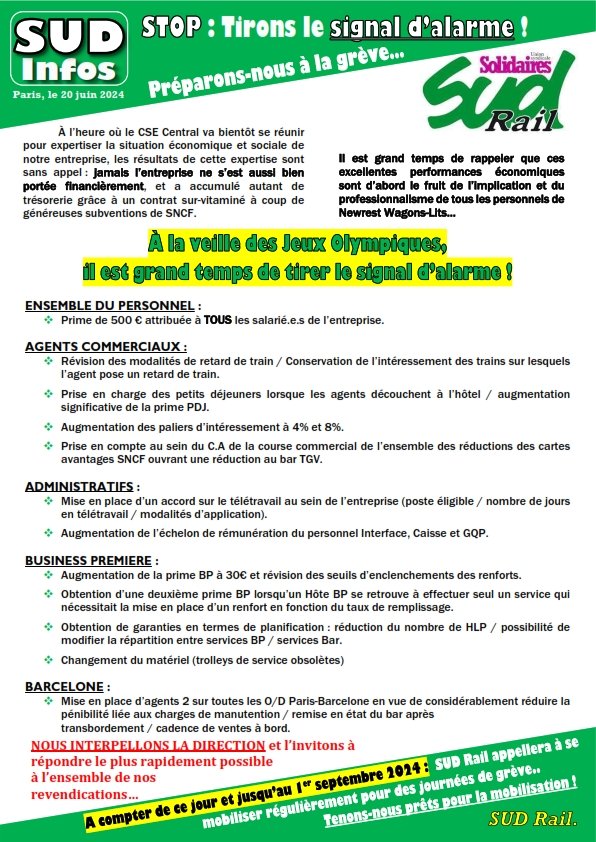 Il est grand temps de rappeler que ces excellentes performances économiques sont d’abord le fruit de l’implication et du professionnalisme de tous les personnels de Newrest Wagons-Lits…