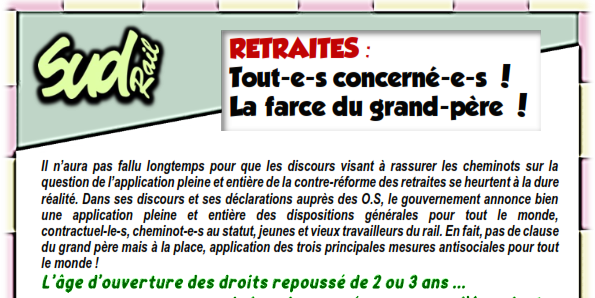 Il n’aura pas fallu longtemps pour que les discours visant à rassurer les cheminot·es sur la question de l’application pleine et entière de la contre-réforme des retraites se heurtent à la dure réalité. Dans ses discours et ses déclarations auprès des syndicats, le gouvernement annonce bien une application pleine et entière des dispositions générales pour tout le monde.