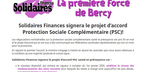 Solidaires Finances signera le projet d’accord PSC santé et prévoyance car :