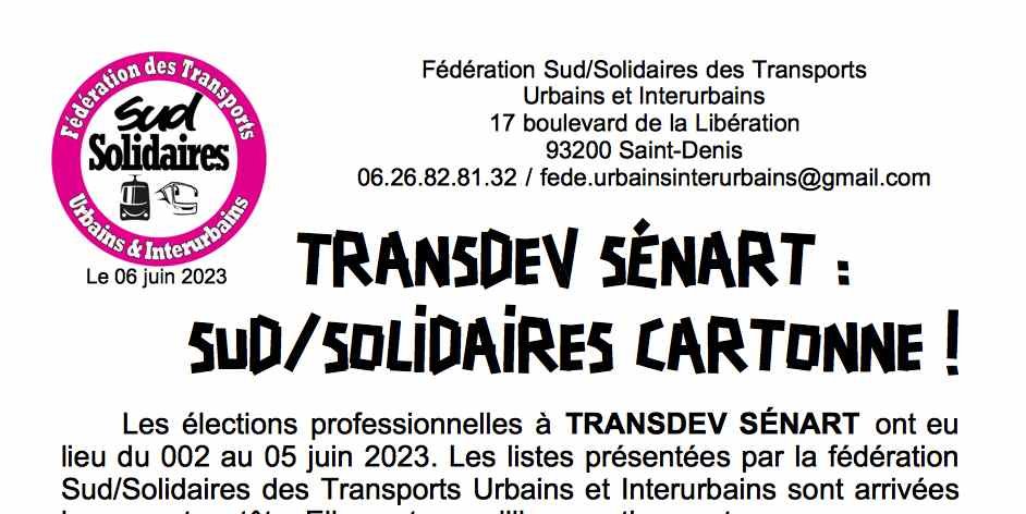 Transdev Sénart : carton plein pour Sud/Solidaires !
