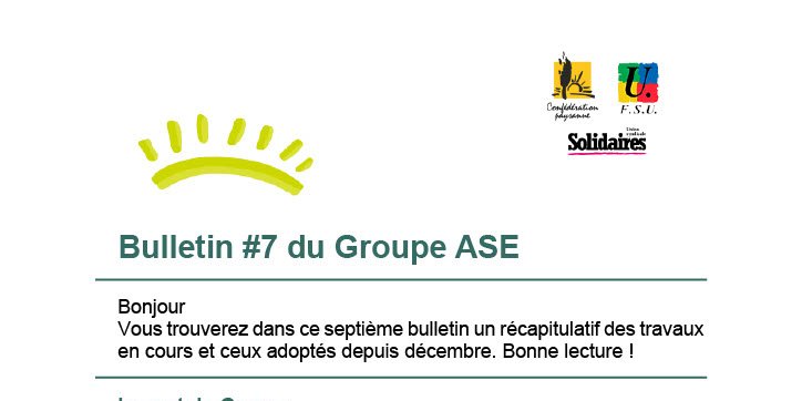 Bulletin du groupe Alternatives Sociales et Écologiques au CESE : Bulletin ASE n°7