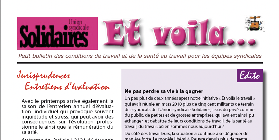 - Édito : Ne pas perdre sa vie à la gagner ;