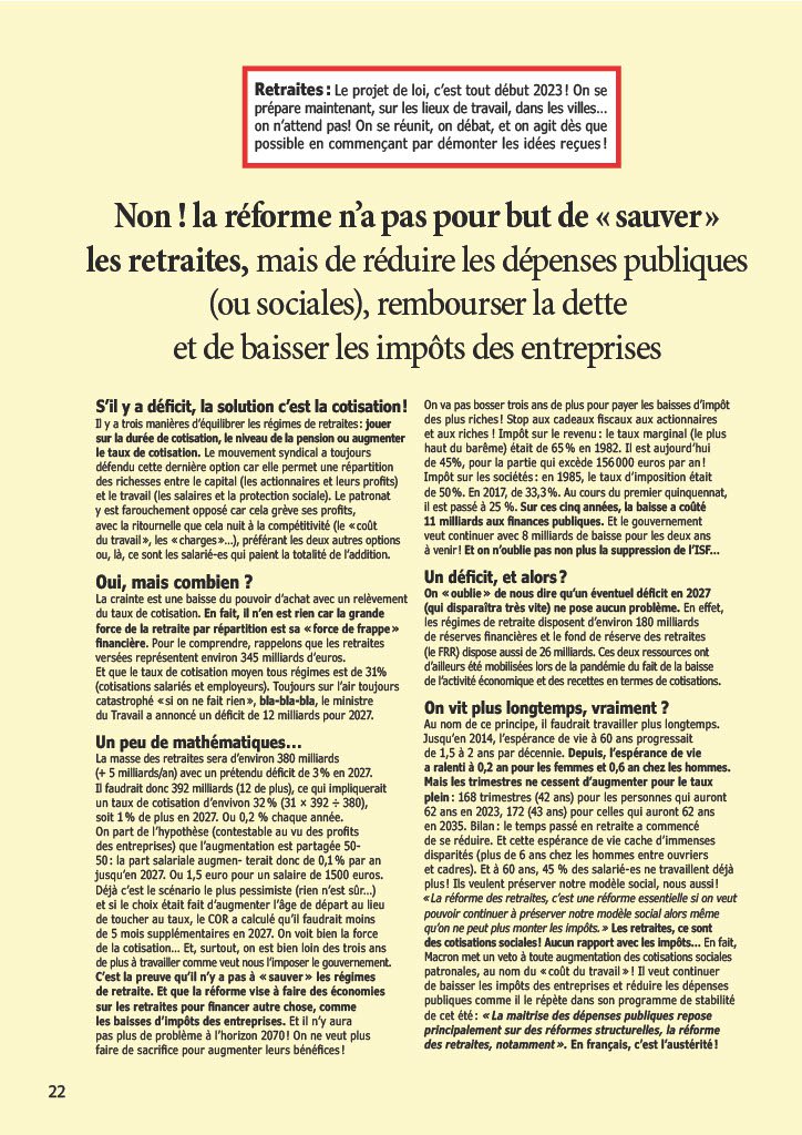 Retraites : Le projet de loi, c’est tout début 2023 ! On se prépare maintenant, sur les lieux de travail, dans les villes... on n’attend pas! On se réunit, on débat, et on agit dès que possible en commençant par démonter les idées reçues !