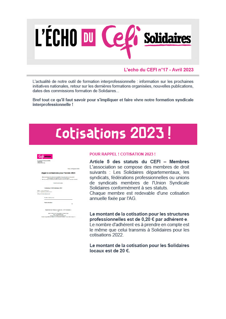POUR RAPPEL ! COTISATION 2023 !