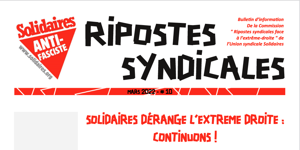 Bulletin d’information n° 10 du groupe de travail « Ripostes syndicales face à l’extrême-droite » de l’Union syndicale Solidaires.