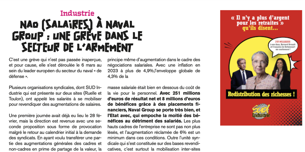 C’est une grève qui n’est pas passée inaperçue, et pour cause, elle s’est déroulée le 6 mars au sein du leader européen du secteur du naval « de défense ». Plusieurs organisations syndicales, dont SUD Industrie qui est présente sur deux sites (Ruelle et Toulon), ont appelé les salariés à se mobiliser pour revendiquer des augmentations de salaires.
