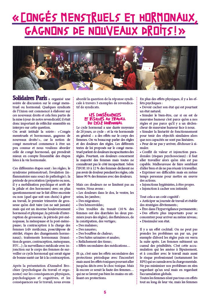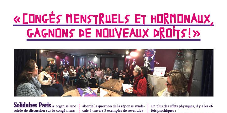Solidaires Paris a organisé une soirée de discussion sur le congé menstruel ou hormonal.