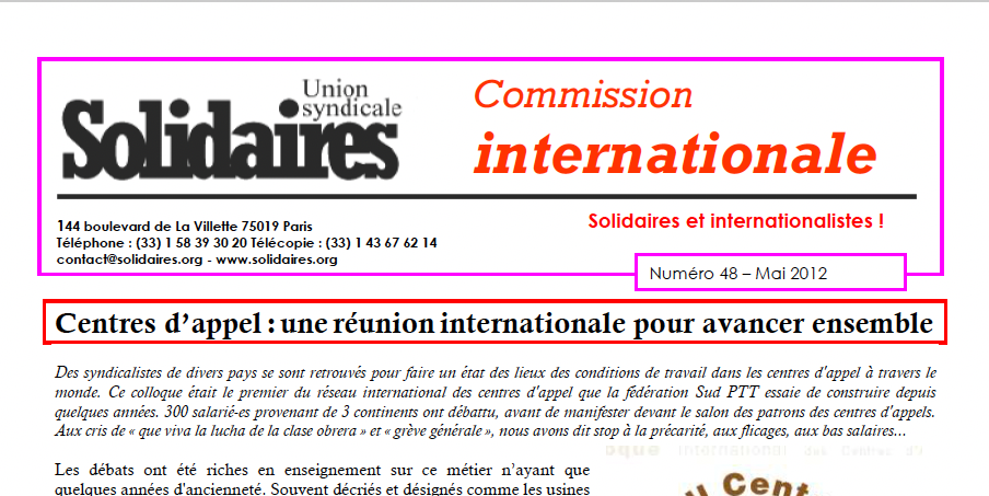 - Centres d’appel : une réunion internationale pour avancer ensemble