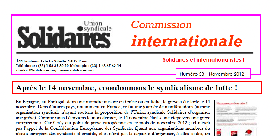 - Après le 14 novembre, coordonnons le syndicalisme de lutte !