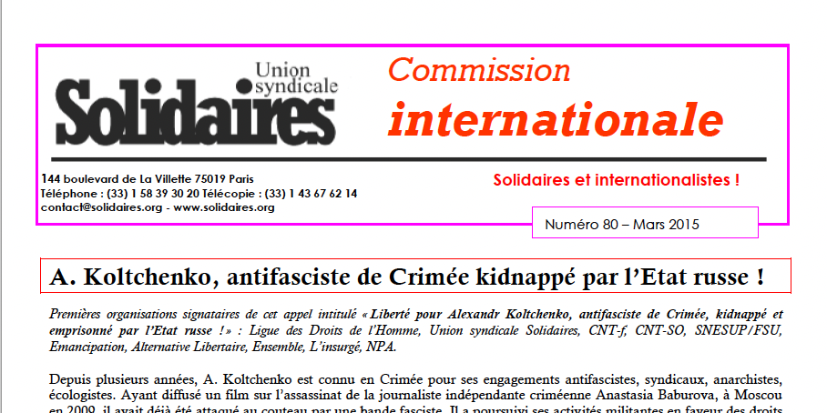 A. Koltchenko, antifasciste de Crimée kidnappé par l’Etat russe !