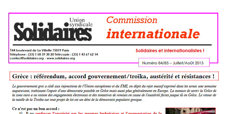 Solidaires et internationalistes ! : N° 84/85