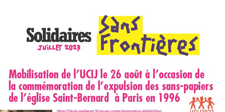 Prochaine mobilisation de l'UCIJ : le 26 août 2023 à l’occasion de la commémoration de l'expulsion des sans-papiers de l'église Saint-Bernard à Paris en 1996 / Hommage à Madjiguène CISSÉ